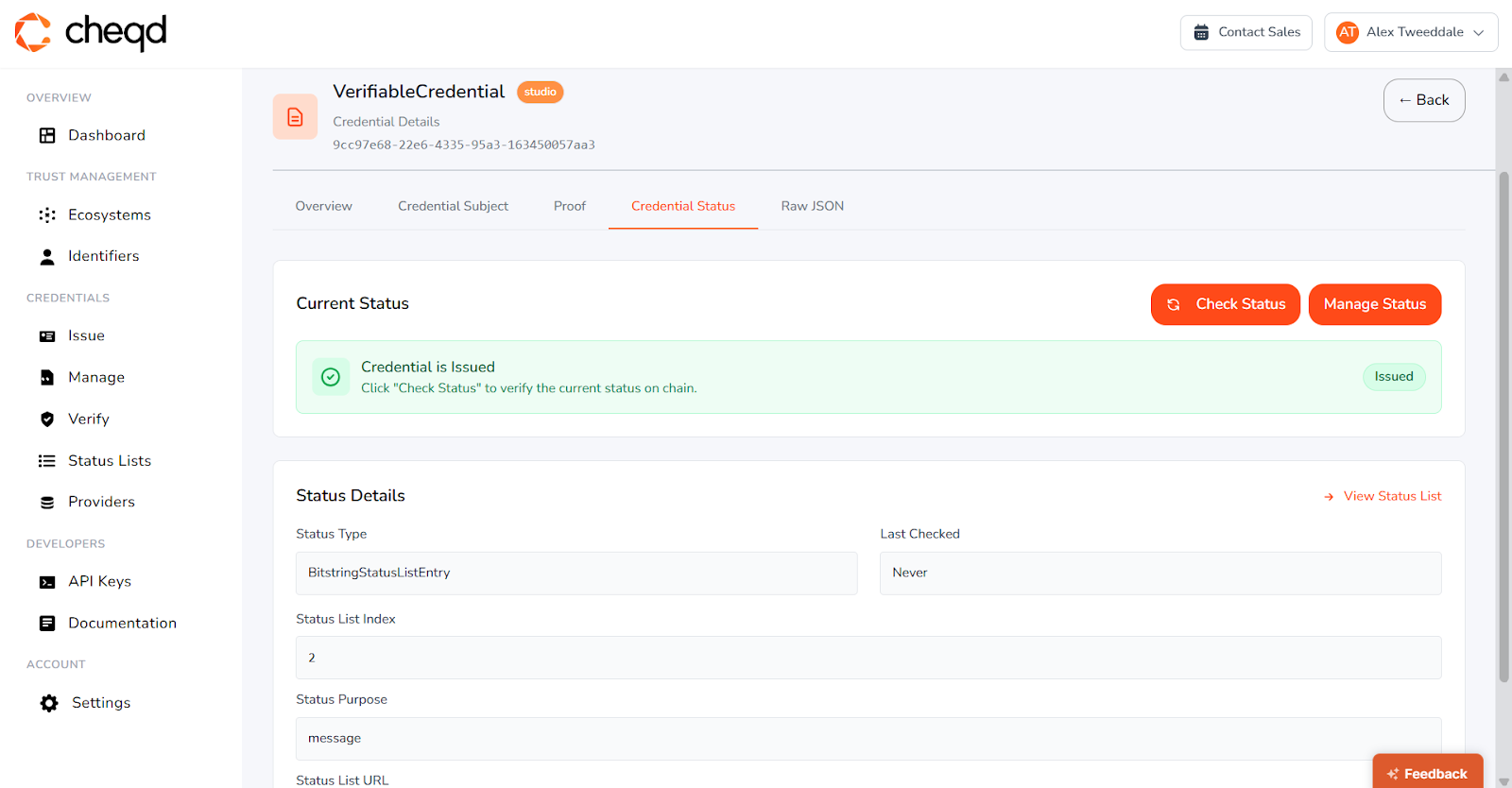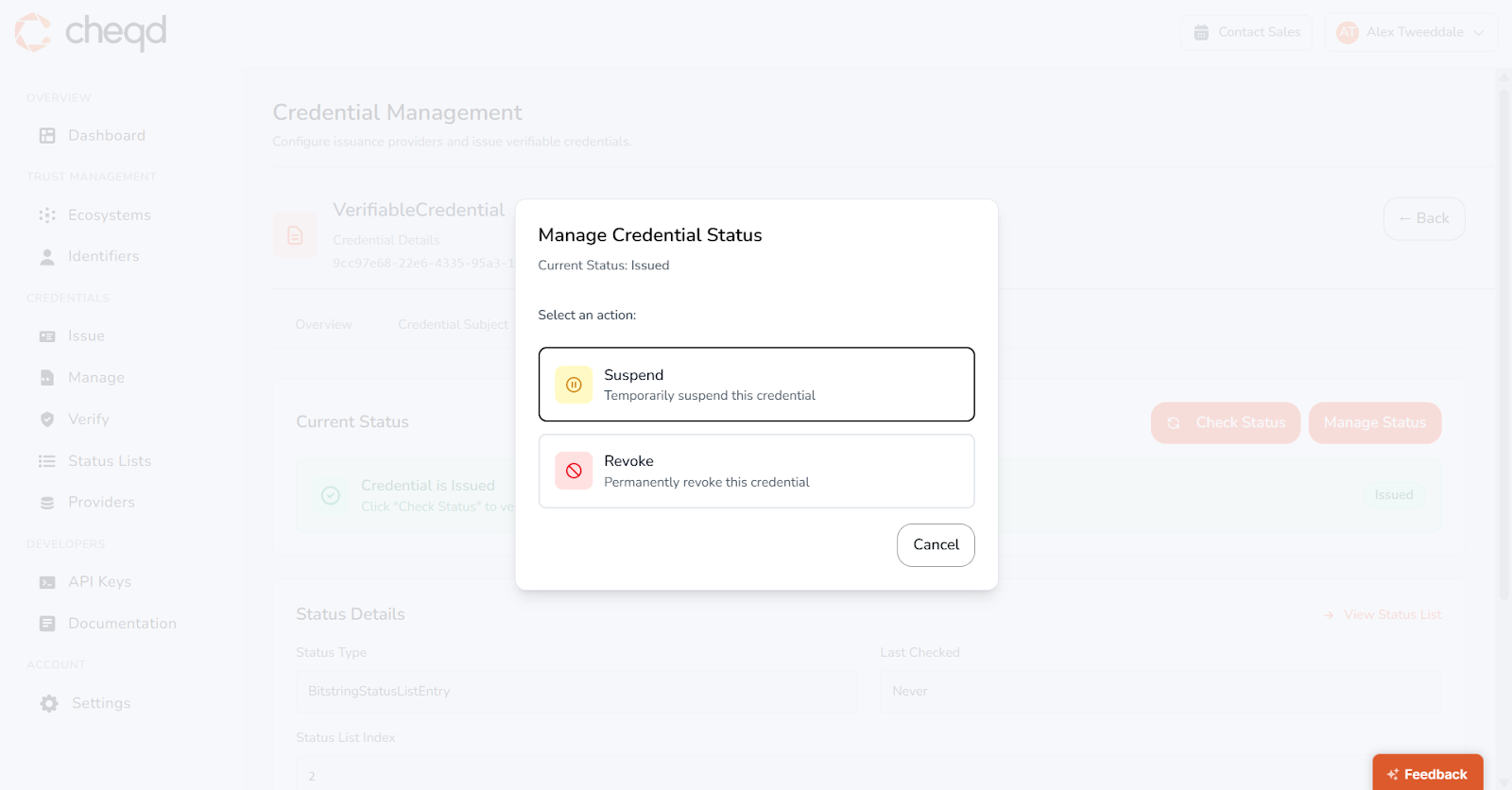 Q4 on cheqd Studio has been heavily focussed on status lists, allowing users to revoke or suspend credentials or ecosystem members.