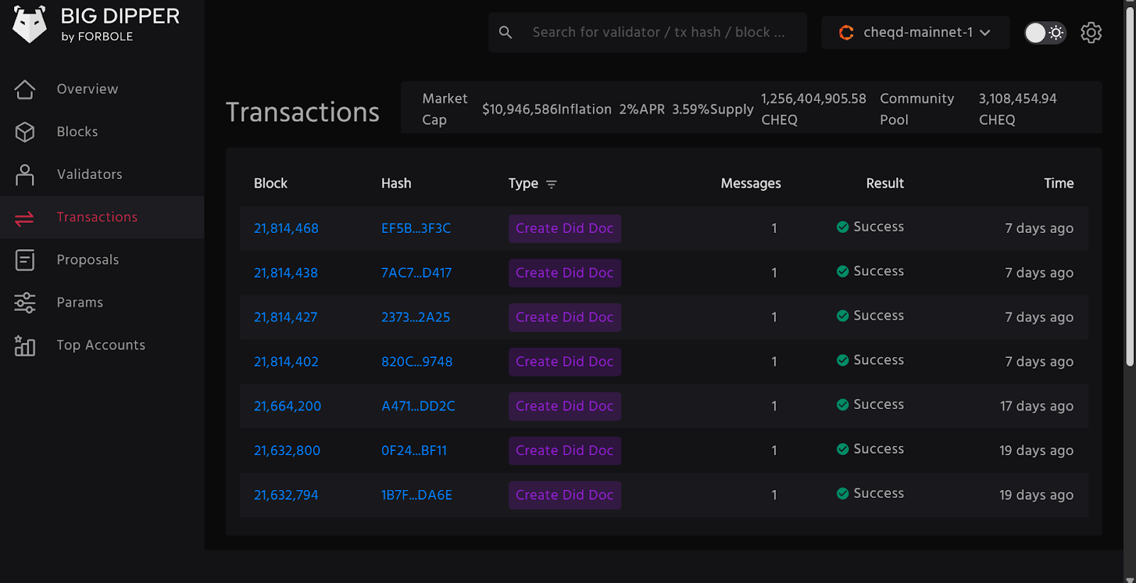 Firstly, we have fixed an ongoing bug with transaction filtering, which stopped working after our v4.x upgrade. Now, users can seamlessly filter by transaction type once again, which is very useful for monitoring DIDs and Resources on the network.